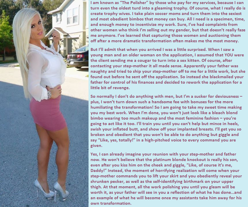 Today's contest batch once again comes from contests hosted by anonymous1234alt on DA - part 1 is here. This set is near and dear to my heart as it contains some of my favorite/important captions I feel I made on DA. The final two/three caps were the origin stories for the Polisher and Dolly Saga series that I created a lot of content for while I was on DA. The rest are sequels to caps made by anonymous1234alt which I really, really enjoyed writing. While their account is gone, I did manage to salvage some versions of the initial caption for these sequels and will link them where appropriate.